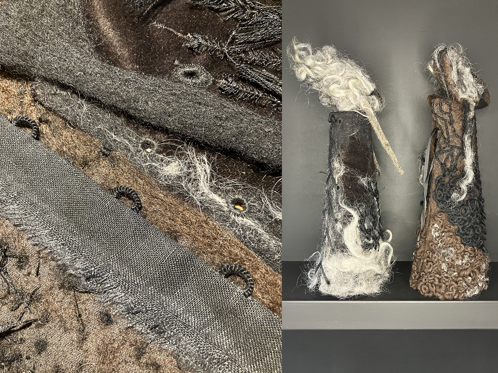 TECHNICS ︎hand-governed machine-stitching + hand embroidery + needle felting YARN ︎Royal R120/D2 C200 + DMC 310 + merino wool, cotton, linen FABRICS ︎discarded left-over scraps