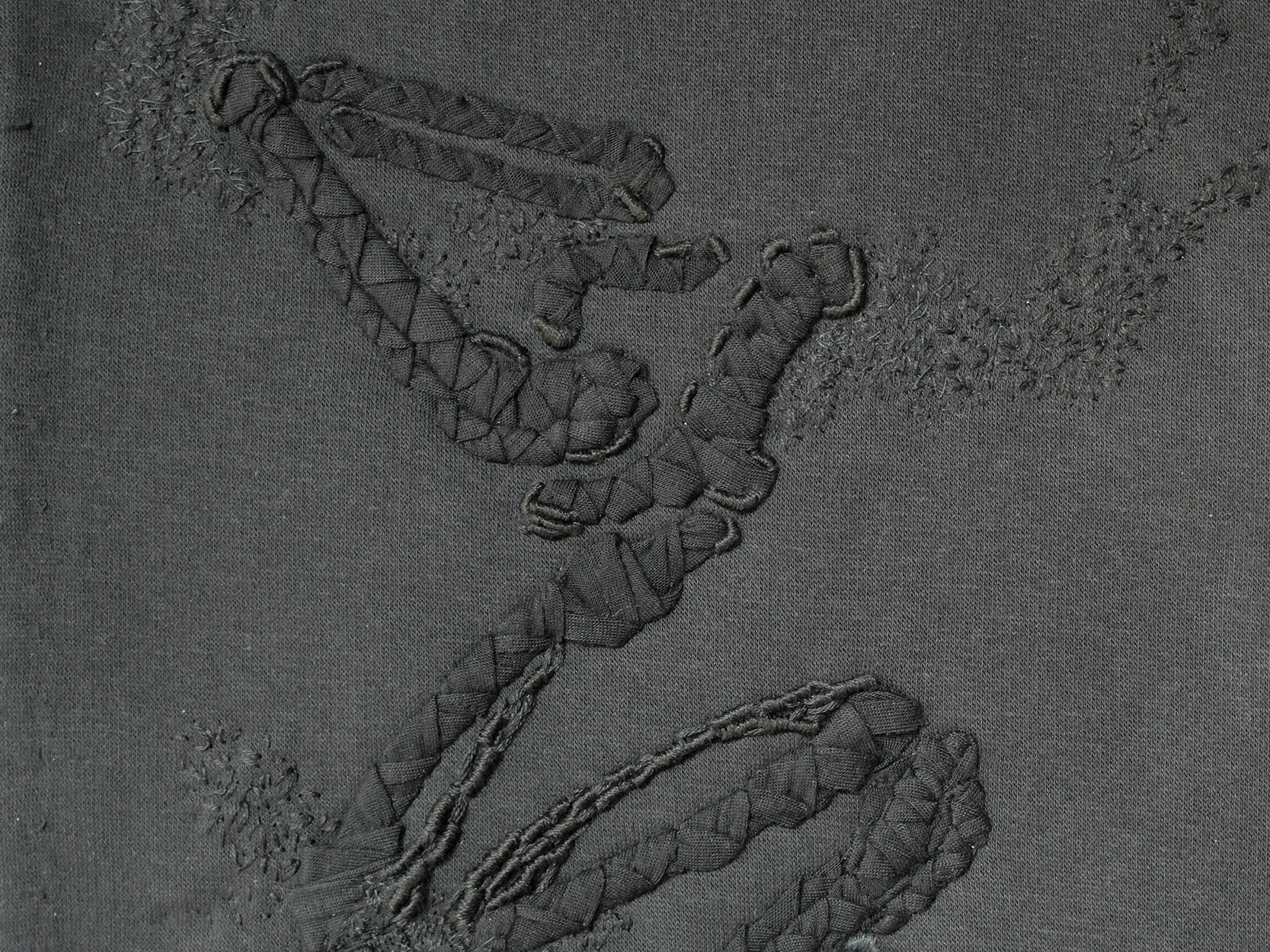 TECHNICS︎hand-governed machine-stitching + hand embroidery YARN ︎Madeira Frosted Matt 7800 + DMC 310 FABRICS ︎discarded heavy-weight jersey for base + lightweight jersey strips